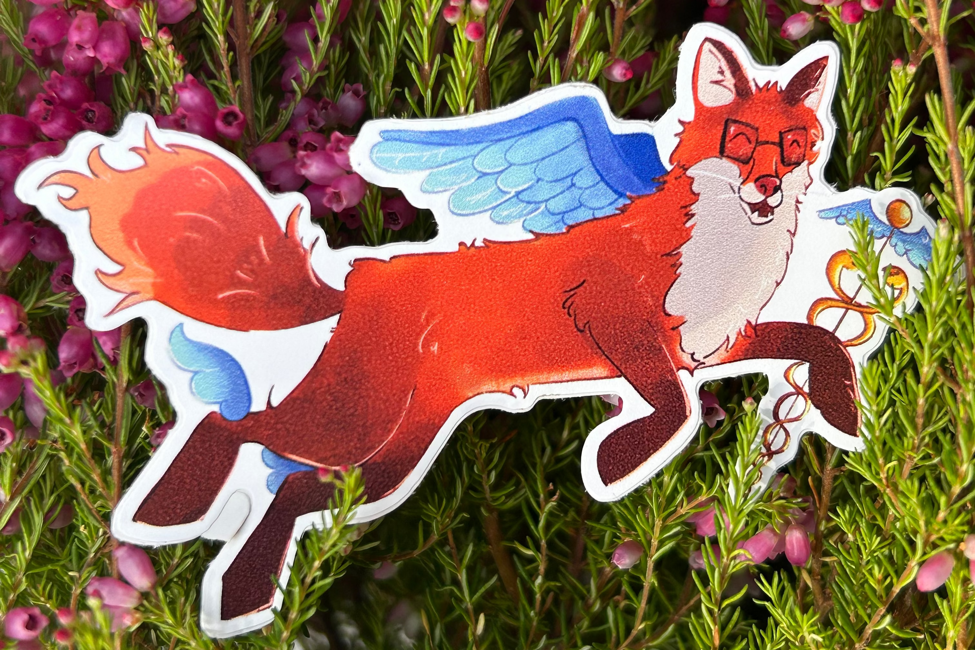 Egyedi, kézzel rajzolt "Hermes róka" matrica