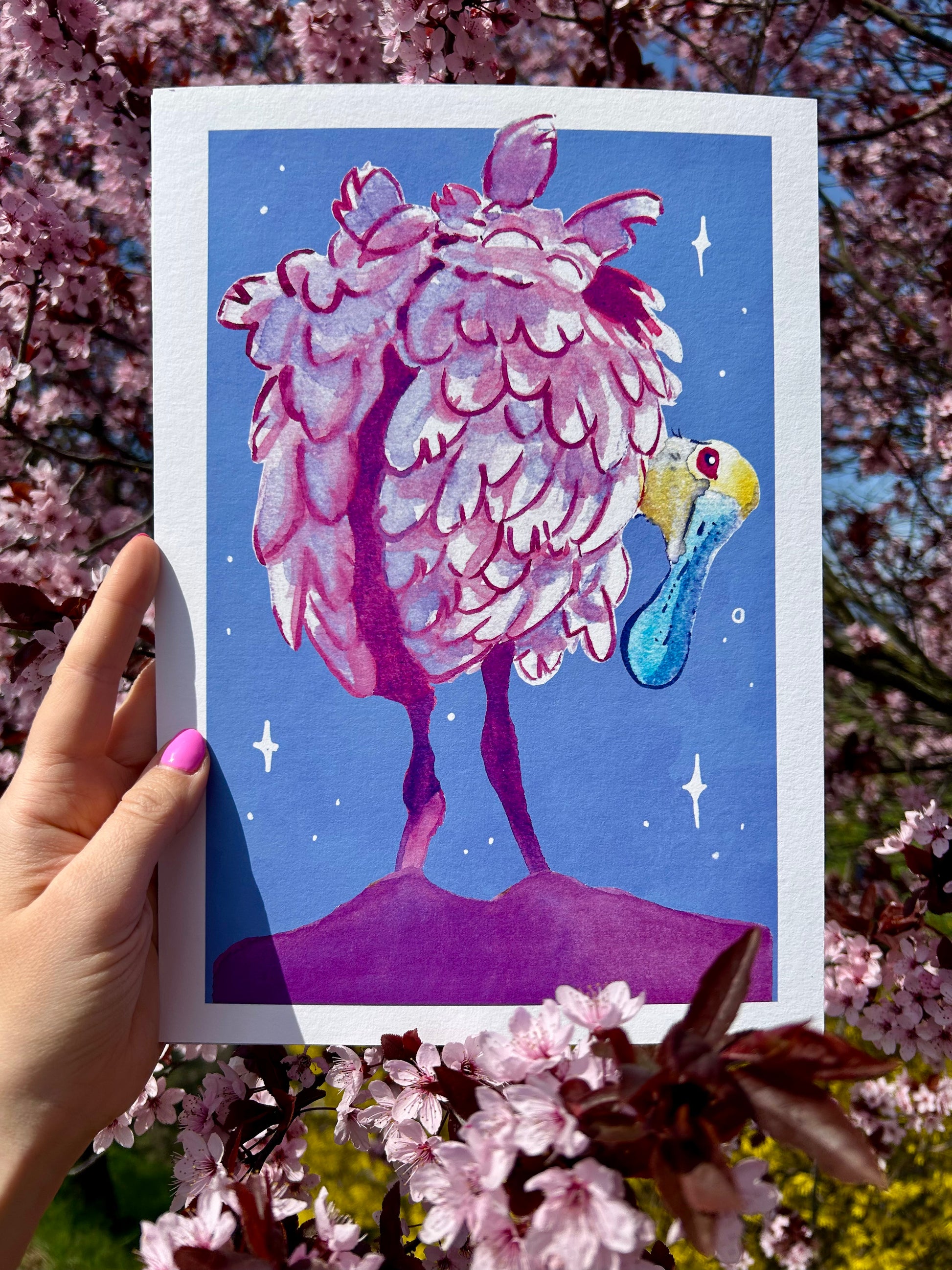 Rózsás kanalasgém A4-es művészi Giclée nyomat